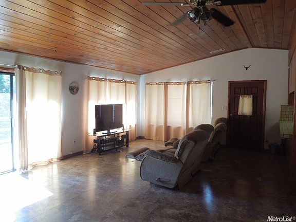 Quiet and Peaceful home on 4.69 acres. 3 bedroom, 2 bath single story home with wood burning stoves in living room and in the lg. master bedroom. Wood ceiling makes this home feel cozy. Very private location at the end of a long driveway. Plenty of room for toys! Pond with rainbow trout to enjoy the days fishing. The adjoining lots are 4.3 and 5.43, seller will offer good deal to sell w/house. In 2012 the home had a roof clearance, new paint, new deck and new septic tank. Has a pad below.