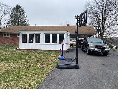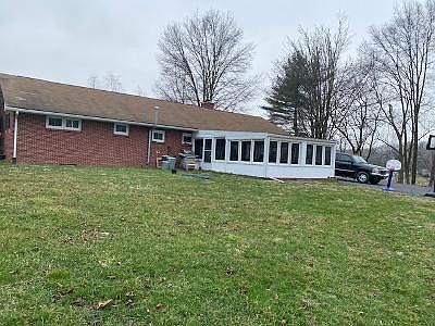 Brick Ranch in Milford Twp bordering Licking Creek. 3 bedrooms & first floor laundry! Beautiful kitchen/dining & appliances included! Large living room with wood burning fireplace. Inviting 20x20 Sunroom. 1.5 baths up & 1 full bath down. Downstairs bath is not funtional. Basement is finished with a Den that has a fireplace, office area, area for a pool table and full kitchen! 2 car carport, 1314 SF Rustic 2 car garage with storage above! Rustic 36x24 rear storage building. Circular drive! Whole house fan. All this just outside of town on 3.34 level acres bordering Licking Creek!