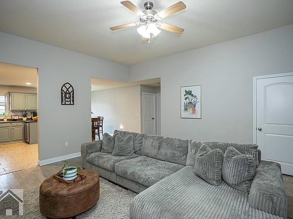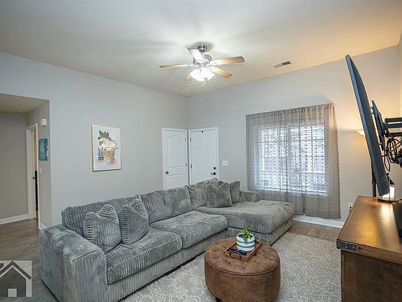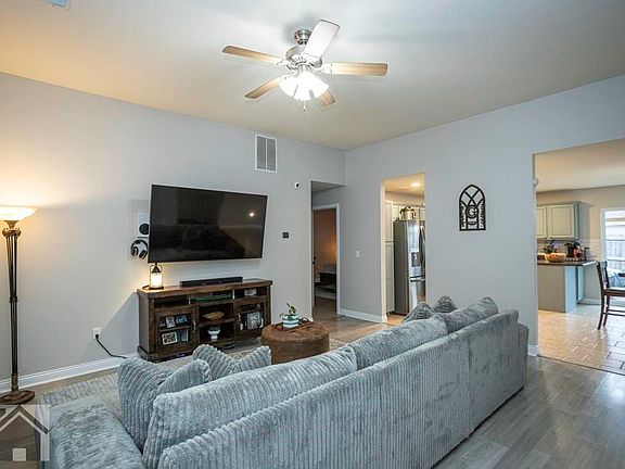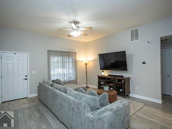 Adorable 3 bedroom, 2 bathroom ranch style home located on a corner lot in the Ridge Creek subdivision and within 15 minutes to the front gate of FLW. Walk thru the front door from the inviting covered front porch into the living room that has luxury vinyl plank flooring, fresh paint and ceiling fan. The kitchen features painted cabinets, stainless steel appliances, and subway tile backsplash. The master bedroom ensuite features LVP flooring, vaulted ceilings, walk in closet, double vanity, and jetted tub/shower combo. Two additional guest bedrooms both feature LVP flooring, ceiling fans, and share a full guest bathroom. Other great features include a two car garage, privacy fenced in backyard, patio, and laundry room. Don't miss out on your opportunity to own this great home. Call today to schedule your showing!