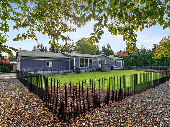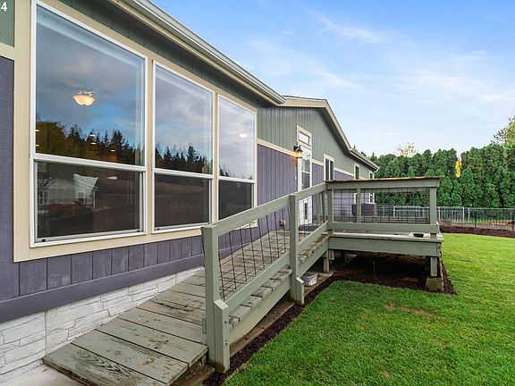 This 2018 manufactured home on 0.27 acre of owned land (no land lease) lives more like a stick built home! Certified Energy Efficient Home. Beautiful open floor plan, huge kitchen with granite counters, hickory cabinetry, SS appliances, double oven, island, pantry & large eat bar area! LVP throughout entire home (no carpet!), huge Primary Bedroom with double closets including a large WI-closet, double sinks, WI-shower, quartz counters & floor to ceiling windows! Two car - extra deep, attached garage with built-in work bench. Convenient ramps in garage & front door entrance (can be removed if desired, stairs are still in place). Large fenced yard with brand new sod, bark & full sprinkler system with timer! Additional side parking area is perfect for parking or hobbies! Enjoy forced air heat, pellet stove & air conditioning. Low HOA of $50/qrt includes seasonal pool & rec center. Deer Creek Estates is a lovely, quiet neighborhood and only a few miles to the freeway or historic Aurora! Washer/Dryer, riding lawn mower & FS refrigerator included if desired.
