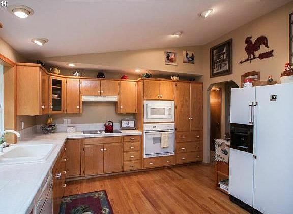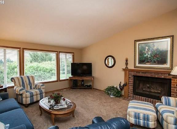 This home features beautiful Mt hood views. Master suite with wood burning fireplace. Vaulted ceilings and fireplace in the living room with large windows to enjoy the mountain view. Gas stove in the family room. Newer decks off the entry and dining room. Spacious kitchen with tile counters. Private 1.06 acre lot with flower beds and beautiful manicured yard. Over sized 2 car garage. This home is move in ready!