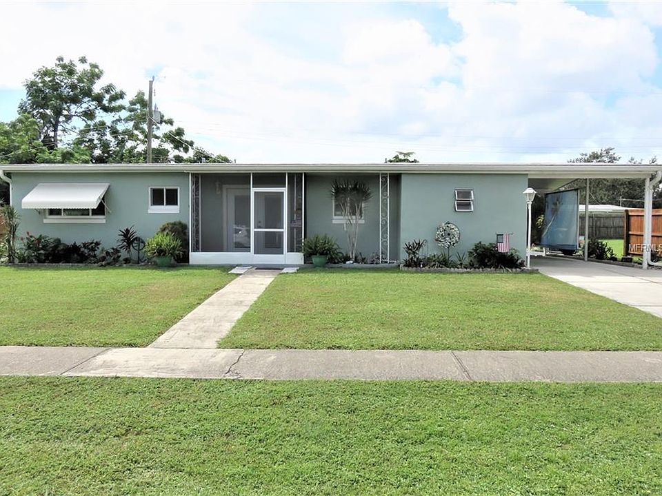 Well maintained home with 2 bedrooms, 1 bathroom, and a carport. Centrally located with county water and sewer in place and sidewalks throughout the community. Enter the home through the screened front porch and glass double doors into a spacious entry. Living and dining room combo. Kitchen was updated in 2016. Home has central A/C and heat and terazzo floors. New windows were installed in 2014. There is a bonus room connected to the living area which is not listed in the a/c square footage and adds extra living space. Home can also be entered through the large Florida Room on side of home and accessed from the carport. The laundry room and a storage shed are located off the Florida Room. Back yard is spacious and partially fenced. Plenty of living space in this home along with lots of storage space.