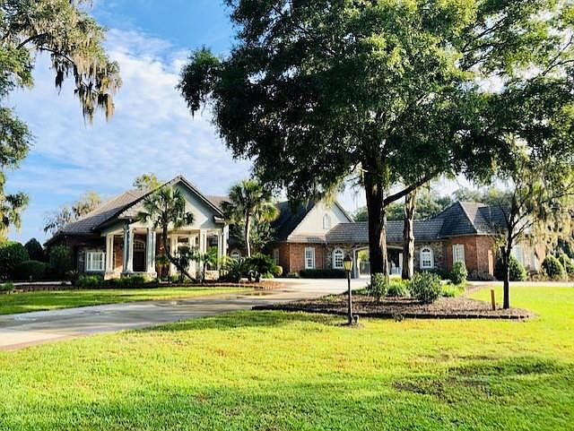 Gorgeous home sitting on 108 acres with scattered granddaddy oaks, beautifully landscaped and also has pastures for horses or cattle. This breathtaking, custom brick home has many amazing features.There is a gourmet kitchen with great cabinetry and tons of granite counter top space, butler's pantry, wet bar area, center island and breakfast bar. The family room has a stone, gas fireplace, built-in entertainment center and a breakfast nook. The master suite is unbelievable, large bedroom area with a sitting room, separate his and hers bathrooms with walk-in closets. Each guest bedroom has its own bath, formal dining and living rooms and a glass atrium covered pool area, outdoor kitchen and porch that is all climate controlled. Home also boasts a separate “in-law” apartment on ground level with beautiful entrance and porch and new concrete walkway for easy access from drive. Property also includes a newly remodeled building with central heat and air and an additional full bathroom (in addition to those in home) that is being used a a personal fitness center and recording studio. This concrete block structure is over 2000 sq feet and has new garage doors with multi row glass windows to allow natural light through the day. Mobile home on property has been fully remodeled and is a 3/2 and currently leased bringing in rental income.