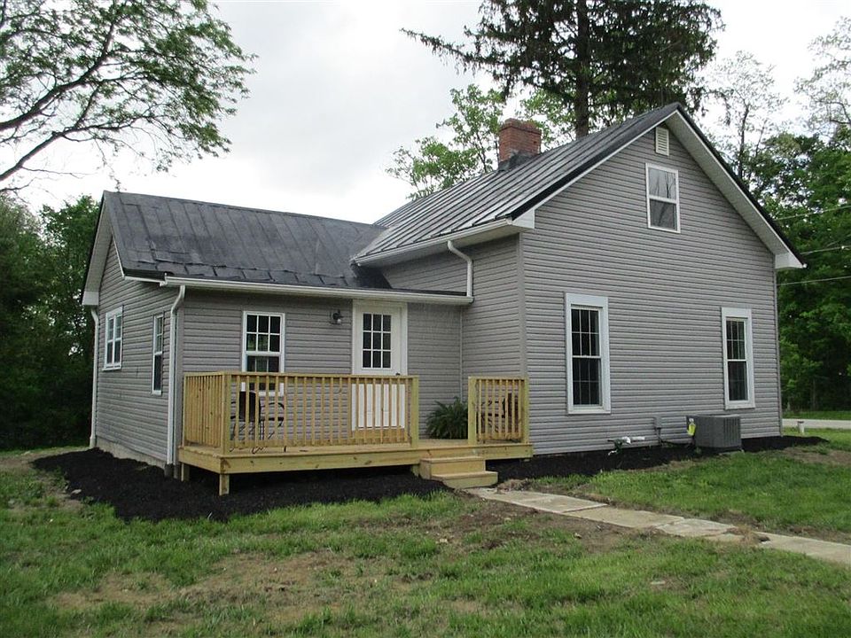 WOW! Totally renovated home situated on 2 acres with woods. This home was gutted to the studs and brought back to life with new plumbing, wiring, drywall, foundation work, siding, & more. Brand new furnace and central air. All new flooring, fixtures, & lighting. Stunning kitchen with corian countertops, center island, new stainless steel appliances, and large deep sink. Open dining area. Spacious living room with decorative fireplace showing exposed original brick. 1st floor laundry & all new full bath. 1st floor master offers exposed brick accent wall and lots of space. Upstairs you will find 2 nice size bedrooms. Newer windows & roof recently re-sealed. This home is a beauty! Delco water & only 35 mins North of Polaris. Easy access to I-71. Highland Schools. 1300 sq ft