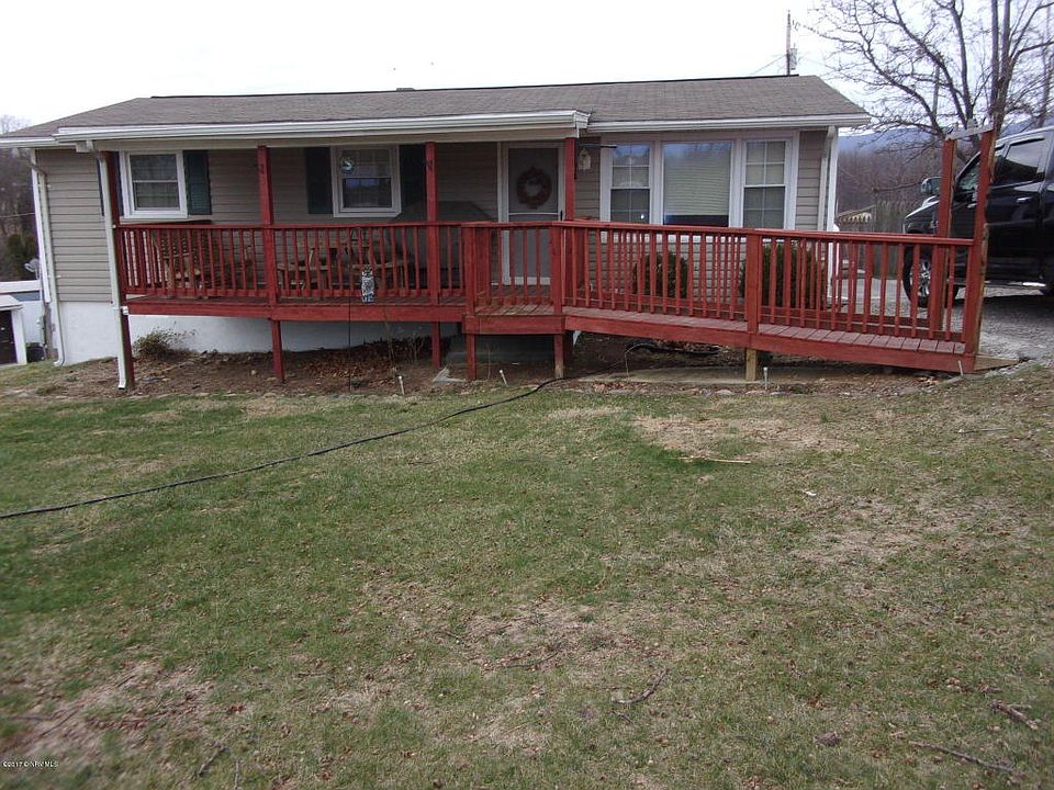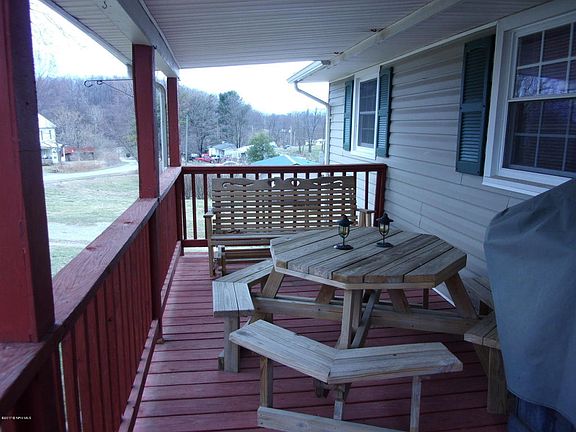 A country setting for this inviting home, featuring hardwood floors in the living room, kitchen, 2 bedrooms and under carpet in 3rd bedroom. New kitchen counter top, some updated plumbing & fresh paint in 2016. Kitchen with dining area, laundry closet and access to back deck and side entrance. Master bedroom has 2 closets & has been freshly painted. A gas propane wall heater in the hall will keep you warm & cozy. The backyard is surrounded by a privacy fence. Lots of storage in the partial basement. A covered front deck to relax on when the warmer weather settles in! (mason jars & holders in bath will not convey) Seller offering a 1 year home warranty.