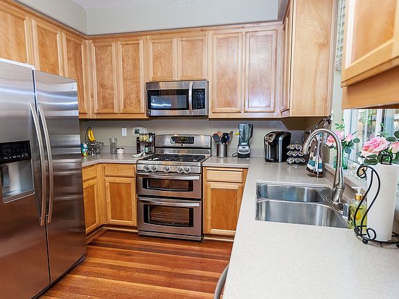 This property is situated at the end of a private court location, premium lot with added parking space. Kitchen boasts new stainless steel appliances, extra large master bedroom, updated carpet upstairs and cherry hardwood floors throughout the first level. Nicely manicured common grounds with pool & spa.