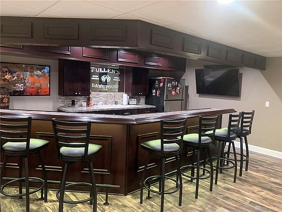 Belly Up!!!!....to this nine stool custom basement bar perfect for football events or Thanksgiving with the family. Renovated in 2017, in addition to the bar the basement includes a full bathroom, living room and fourth bedroom equipped with egress window. The main level is an inviting 1800 sqft open concept with vaulted great room. Upstairs is freshly painted, & new carpet was installed in 2020. The kitchen was updated in 2020 including new countertops, sink, backsplash, cabinet hardware. Upstairs includes 2 full baths, 3 bedrooms - including a master suite. The dining room is perfect size for Sunday dinners with the family!! Matching ceramic tile is in both upstairs bathrooms, foyer, and kitchen. The backyard offers a storage shed, a beautiful firepit added in 2020 and a covered back patio perfect for grilling on a rainy day. This beautiful, well maintained ranch will not last long. Come grab it before football season so you can enjoy this incredible basement with friends and family!