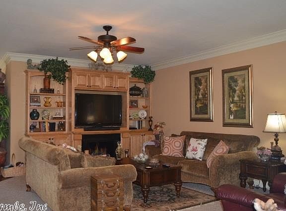 Beautiful home with oversized master bedroom and spacious master bath. Jacuzzi tub, walk in shower, double vanities, and his and her walk in closets. Open living room, kitchen and den area. Built-in entertainment center in living room along with built-in hutch in den with picture window. Double oven, surface range, cabinets galore and granite tile countertops in kitchen plus built-in desk. 24x30 insulated shop with electricity and two car covered carport or great gathering space for entertaining.