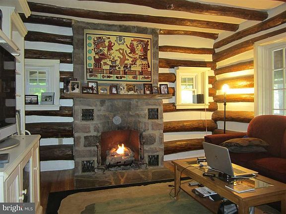 Park like setting next door to Grandview golf course. Exposed wood logs on exterior & interior LR walls. Comfy LR w/stone gas FP, H/W floor, 2 BR's w/c fans, H/W, + walk up attic. LL w/1 car garage, laundry w/W&D, gas furnace, CAC, radon system & possible room for expansion. 2 car detached garage, side patio for relaxing, large fenced yard & a lovely screened wrap around porch complete this home. Most windows replaced, & updated electric.