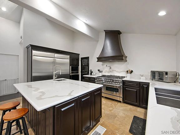 The breathtaking Alpine Ranch offers a unique opportunity to live amongst serene countryside and mountainous views. This stunning property sits on almost 3 acres of land and boasts an impressive 5-bedroom, 5.5-bathroom home spanning 4615 square feet. Upon entering the home, you are immediately greeted with an open concept living space, perfect for entertaining guests. Home has custom-handcrafted furniture, bathroom vanities and cabinets, fireplaces, bar, shelving from Mexico. The spacious chef's kitchen features stainless steel appliances, granite countertops, and custom cabinetry, and a walk in pantry-a culinary dream come true. The living room offers a warm ambiance with a double fireplaces and large windows that fill the room with natural sunlight. The primary suite, is located on the upper level, features a spa-like bathroom with steam shower, a large walk-in closet, and stunning views of the surrounding outdoors. The ranch also features a spacious outdoor living space wit a livestock enclosure, perfect for housing animals or as a workshop. The property is fully fenced and cross-fenced, making it safe and secure for horses, livestock or gardening. You'll also find a beautiful raised patio, the owners spent over $80K, ideal for outdoor dining and entertaining. The possibilities are endless with this magnificent property whether it be horse riding, a chicken farm or running a small ranch. Come experience the beautiful of Alpine ranch home and make it your own today. Less than 40 miles from the San Diego beaches and close to main street Alpine.