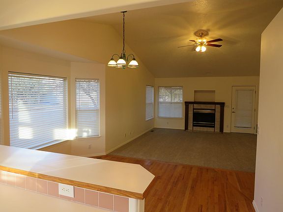 AVAILABLE NOW! SINGLE -STORY HOME- UPDATED MASTER BATH WALK IN SHOWER-FRESHLY PAINTED INTERIOR a year ago- NEWER CARPET-RV PARKING-ALL KITCHEN APPLIANCES- OPEN CONCEPT DESIGN-Fully Fenced Yard-CORNER LOT This lovely single story home is situated in THE ELK RUN Subdivision. It is in close proximity to various shopping, eateries, entertainment venues and medical establishments. The home is nicely situated for your daily commute. The interior offers: An open floor plan concept, 3 nicely appointed bedrooms, 1 can be used as an office/ spare room, bedroom, etc. the other bedroom has a built in work station; 2 baths, main bath with skylights. The living room has direct access to your outside covered patio. The kitchen offers ALL KITCHEN APPLIANCES, { glass top stove/oven, side by side refrigerator, dishwasher and microwave}, pantry, breakfast bar, plenty of natural lighting offered by the large lovely windows, stainless steel kitchen sink, garbage disposal, good amount of cabinetry and work space. The dining area and kitchen have beautiful hard wood floors. The home has NEWER carpeting in the living room and bedrooms. The entire interior has been freshly painted throughout a year ago. ALL bedrooms and living room have ceiling fans. There are vaulted ceilings and plant shelves. The home has central air and heat and is cable ready. The gorgeous master bath has been updated and boasts beautifully appointed dual sinks, great cabinetry, lovely large walk in shower boasting beautiful tile work. There is his and hers mirrored closets with built in shelves. There is great use of lighting to aid with your daily grooming needs along with great ventilation further enhancing the ventilation of the room by a convenient functioning window above the toilet area. The exterior offers: A completely fenced back yard, a covered patio, Shed, RV PARKING with concrete pad, automatic sprinkler system, an attached 2 car garage with automatic door opener, a door in garage to directly access the side yard { RV PAD}, an extremely handy utility sink in the garage , water softening system and cabinets in garage to further aid with your storage needs. This home is situated in a corner lot. There is mature trees and landscaping. NO SMOKING OR VAPING ALLOWED on premises Sorry NO PETS Tenant pays All utilities. Tenant is to do yard maintenance. This is a NON SMOKING/ VAPING home. There is a 2 car garage. This home has RV PARKING. NEWER Carpet throughout. Freshly painted interior a year ago.