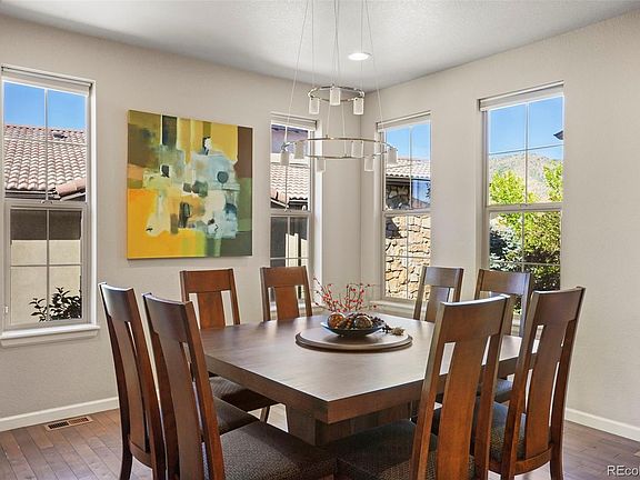 Casella on a premium Solterra lot backing to open space and trails! These are some of the most coveted lots in Solterra. Stone turret creates a private and inviting entry to your home. Designer interior finishes with gorgeous hardwood floors, wood kitchen cabinets, and warm grey tones. Entertainment-sized kitchen with a spacious kitchen island, granite counters, and a tile backsplash. The main floor features a study, formal dining, great room, large kitchen, breakfast nook, butler pantry, and a stone fireplace. Four bedrooms are upstairs, including a spacious primary suite, an en-suite bath, and a walk-in closet. A jack-n-jill bath adjoins two bedrooms, and the 4th bedroom has a private en-suite bath. Upper-floor laundry is so convenient. Views of Red Rocks from the upper floor! The fully finished basement adds a rec room, bedroom, full bath, and a flex room that could be used as a 2nd office, gym, or even a bedroom. The backyard is an oasis and perfect for entertaining—a large stone patio with seat walls, a stone firepit, and lawn space for playtime. And it's just a short walk to the Retreat Clubhouse, you will feel like you are living at a resort. Nestled in a postcard-perfect world between urban Denver and the surrounding Green Mountains, Solterra offers residents a four-season wonderland for active living. This award-winning community is draped in breathtaking views and an inspired architectural vision that takes cues from the Tuscan countryside. From its spectacular natural surroundings to its centerpiece clubhouse, Solterra has left no detail overlooked.