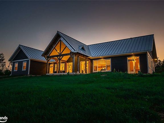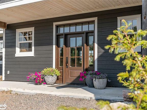 Experience luxury and tranquility in this meticulously crafted home, nestled on 4.5 acres just minutes from Haliburton in the exclusive Gainforth Estates neighbourhood. Completed in 2022, this 4 bedroom and 2.5 bathroom bungalow has been built using only the finest materials, with no detail overlooked and no expense spared. This property offers a serene escape with direct access to 41 acres of adjacent shared parkland including trails and a beautiful deep water pond for swimming, fishing, canoeing and kayaking - a nature lovers paradise! With nearly 3000 square feet of refined living space on one floor, this home exudes both grandeur and warmth. A spacious foyer leads into the the open concept living space which was designed for entertaining with its impressive 10-foot ceilings, bespoke millwork, timber-frame accents, floor-to-ceiling propane fireplace and extensive windows and multiple walk-outs for easy access to the covered porch and bright, southerly views over the stunning property. The custom kitchen offers quartz counters, built-in panelled appliances, an oversized island with seating for 5 and the bonus of a butler's pantry with laundry for additional storage and prep space. The primary suite features an office space, walk-out to the backyard and an extraordinary spa-like ensuite with curbless shower, dual sinks and freestanding soaker tub. Three additional spacious bedrooms and a 5-piece guest bath complete this perfectly laid-out home. Additional features include: engineered hardwood and tile floors throughout with radiant in-floor heat, forced air propane furnace and central air, oversized septic and dug spring-fed well for exceptional water quality and supply. An attached garage provides convenient parking, additional storage and direct access to the mud room. Don't miss your opportunity to make this exquisite property in one of Haliburton's most sought after neighbourhoods your own, and enjoy this perfect blend of luxury and nature for years to come.