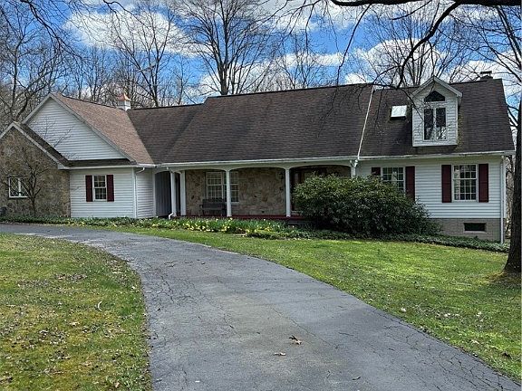 Classic Country Estate. Price reduced! Circular blacktop drive leads to park-like setting of 3 or 4 bedroom home with 2.5 baths. Oversized garage holds 3 vehicles, finished with tiled floors, heat, and kitchenette, can be used for extra entertaining area. 45 X 50 blacktop pad for extra cars or motorhome. Balcony off master bedroom & two decks off first level. Finished living space is 3154 sq ft. Semi-finished basement family room 750 sq ft. & 982 sq ft unfinished bonus room on 2nd level. Total 4886 sq ft possible. Two massive wood or gas fireplaces. Natural stone fireplace in family room is a showstopper. Kitchen features abundant solid Woodmode cherry cabinets, large center island, Surell countertops, JennAir Downdraft Electric Grill, KitchenAid Double-Electric built-in ovens, and built-in combination microwave/convection oven, KitchenAid dishwasher, and trash compactor. Master bedroom has stone and oak feature wall and picturesque dormer.