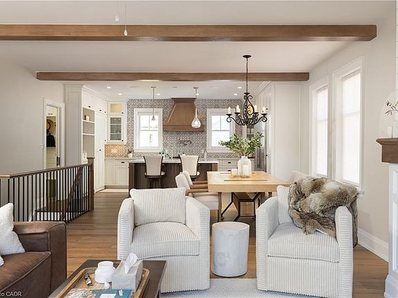 CUSTOM RENOVATION BUNGALOW. This exceptional residence is the perfect blend of modern luxury, thoughtful design, and everyday comfort. The open-concept main floor is bathed in natural light, showcasing high ceilings, wide-plank hardwood floors, and refined designer finishes throughout. The Great Room focal point is the gas fireplace and detailed surround open to the dining room area for easy entertaining. The chef’s kitchen is a true showpiece, featuring quartz countertops, a 6-burner gas range, premium stainless-steel appliances, and a cleverly concealed walk-in pantry — a seamless balance of beauty and function. The primary suite is a private retreat with a custom PAX closet system and a spa-inspired 3-piece semi-ensuite complete with a glass shower and heated floors. A second bedroom can also be used as a main floor office. From either the primary bedroom or the mudroom, step outside to a 400 sq. ft. covered porch where a fireplace and built-in TV space create a 3 season indoor-outdoor haven. The lower level offers an expansive extension of living space with a welcoming family/games room, a 4-piece bathroom, gym area, laundry room, and two additional bedrooms — perfect for guests, hobbies, or a growing family. Outdoors, the fully fenced and landscaped backyard sets the stage for effortless entertaining and relaxation. Additional highlights include 9 ft. ceilings, hardwood flooring throughout, a heated detached double-car garage with easy access to attic storage, and a whole-home integrated security system with cameras and sound system. Every detail has been carefully curated in this exquisitely designed home, offering a move-in-ready lifestyle with upgrades too numerous to list. This is a property you’ll want to experience firsthand. Located a short stroll to shops and restaurants of downtown Burlington and close proximity to highway access.