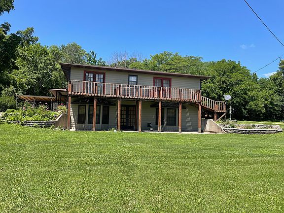 Sitting on a beautiful parklike 4 acres with the Pomme de Terre River on the north side and a spring fed creek on the east is this lovely split level home offering 3 bedrooms, office, 3 bathrooms, spacious living room with stone fireplace with newer pellet insert! The kitchen displays a corner sink with 2 windows, lots of counter space, breakfast bar & dining area with hardwood floors. You'll love sitting on the covered front porch, in the large sunroom or one of two decks overlooking this amazing property! The basement family room is a real plus with another pellet stove! You have 2 carports attached to the house along with a spacious workshop! The wonderful shop building has electricity, 220 and a nice lean to with electric too for your tractor or other toys! Plus you'll love the historic spring house located off the front drive!