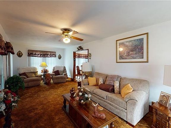 Welcome to this charming brick cape cod in the country! This 2 bedroom home sits on just over an acre with a 1 car detached garage and outbuildings. Paved driveway to the garage and back patio area. Out front is a charming front porch to sit and relax in the summer evenings! Enter the front of the home into the large living room. Through the living room is the dining room with a large window and leads into the kitchen and off from the kitchen is the breakfast nook! There is a main floor bedroom and full bath. Upstairs is the second bedroom which could be turned into 2 bedrooms by adding a wall. The basement has the laundry, shower and sink along with the oil furnace and the wood burner. This space could be finished for a second living space. Large back yard with outbuildings to store your tools and toys! Come make this your home in the country!