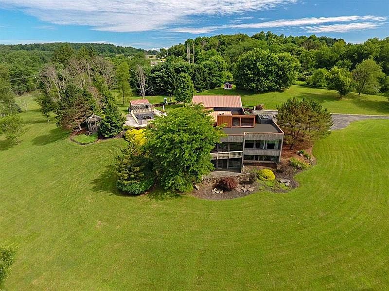 HAVE IT ALL! This one-of-a-kind contemporary home is situated on 18.68 acres and has breathtaking mountain views from nearly every room in the house. Also included in this listing is a commercial shop/apartment building (2 commercial garage bays and large shop with bathroom then two apartments) . The 4,400 square foot estate features beautiful stonework, cedar ceilings, walls of windows, three fireplaces, huge covered patio with an outdoor kitchen, 3 car garage and large storage attic loft, inground pool, professionally landscaped grounds, several private balconies, circular governors driveway, massive laundry room with storage, and so much more! Truly a must see for anyone who appreciates Frank Lloyd Wright inspired architecture. Large office could be used as a 5th bedroom, if needed. This secluded paradise is easily accessible to Rt 43 and 119 (you can be in Morgantown in 20 mins and in Pittsburgh in less than an hour).