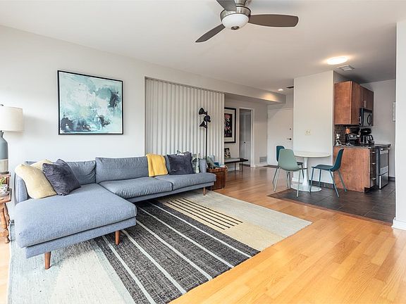 Discover modern living in this beautiful 1-bed condo in gated community featuring pool and fitness room!! Mid-century building boast an inviting common area and entertaining space. Inside, the condo offers stunning nail-down hardwood floors and updated kitchen with SS appliances and granite countertops. Bask in natural sunlight and enjoy the large balcony. Owner storage, plus, solar blinds and covered parking!! The perfect blend of style and convenience. Listing agent related to seller.
