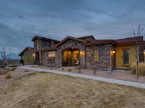 Award winning Albero model, prime lot. 2 story foyer w/4 Hinckley chandeliers. Great Room w/fireplace w/stacked scabo stone & gourmet kitchen w/expanded island, granite countertops & travertine backsplash. Timberlake cherry cabinetry, under cabinet lighting, walk in pantry, Dacor gas stove & double convection ovens. Utility room w/oversized sink, 2 car garage w/overhead storage. Elegant dining room & covered patio w/gas BBQ connection. Master bedroom suite has solid cherry finished arched doors. French doors to covered deck w/views of lake & mountains. Master bath includes a Jacuzzi tub, walk in shower w/seat & double slide shower head, Torreon stone, travertine counters & bathtub top. Large walk-in closet w/California Closet design. Downstairs features wet bar w/refrigerator, wine refrigerator, sink & microwave. Great room w/hickory floors & covered patio w/ "backyard" overlooking highline canal, path and lake. Downstairs two bdrm/hobby/office suites w/walk-in closets & full baths.