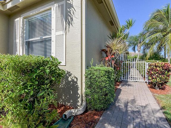 Immaculate 3/2/2 Villa, corner lot, facing the park, in ultra convenient Andros Isle. Well maintained. All hard floors (Ceramic tile and premium laminate). New stainless kitchen appliances. Wood kitchen cabinets, tiled backsplash. Lots of closet space. Covered and screened back patio. Pets welcome. No age restrictions. HOA Fee includes award winning clubhouse and pool, 24/7 staffed gate, home security system, roof pressure cleaning, exterior painting, all outside landscaping and irrigation, basic cable, broadband, WiFi. Private road to Publix. easy access to Turnpike, Airport, Wellington and downtown WPB. These locations facing the beautiful park are not often available. Please be aware that there is no back view from back patio except privacy hedge.