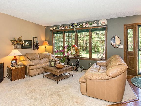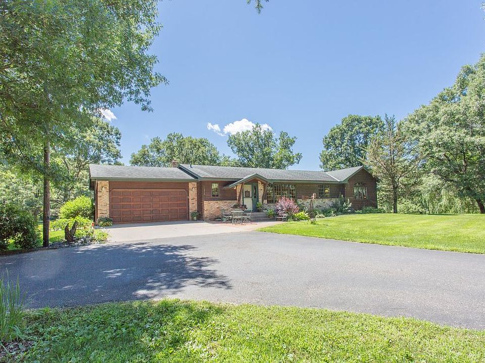 Privacy here! Quiet street w/4 wooded acres. Wildlife to be seen all the time! Cozy Rambler w/beautiful fireplace, main floor laundry, nice deck & porch, large owner suite w/private whirlpool bath, bsmt finished in rustic knotty pine, stunning yard w/gardening shed & in ground sprinkling.
