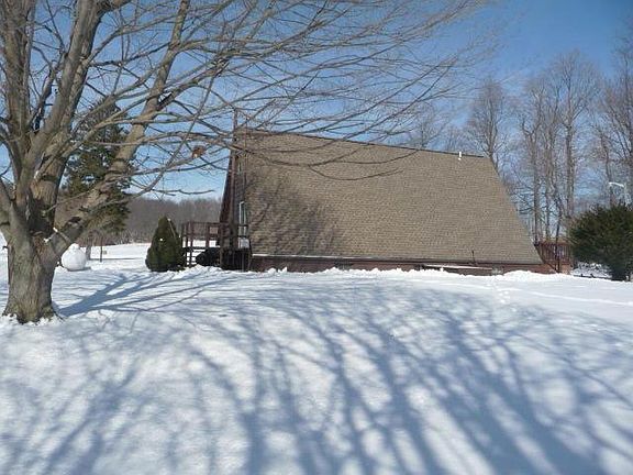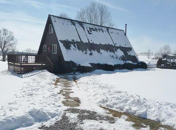 Looking for a peaceful home in the country? Look no further..One owner home! Very unique A frame house. Home is neat and clean. Fabulous deck on both ends of the house. Meticulously maintained. Full basement with second kitchen. Two additional bedrooms in lower level. Welcome home!