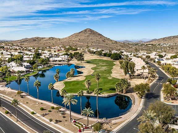 Amazing views surround this Arrowhead ranch Golf Course home on the signature 5th hole of legends. Mountain, Golf and Water views from every window. Home has 1 full bedroom and bathroom downstairs. Gourmet kitchen, granite countertops, granite in all the bathrooms. Generously sized bedrooms. Extended covered patio, pebbled-tec play pool, close to shops, dining and Westgate Sports and Entertainment center.