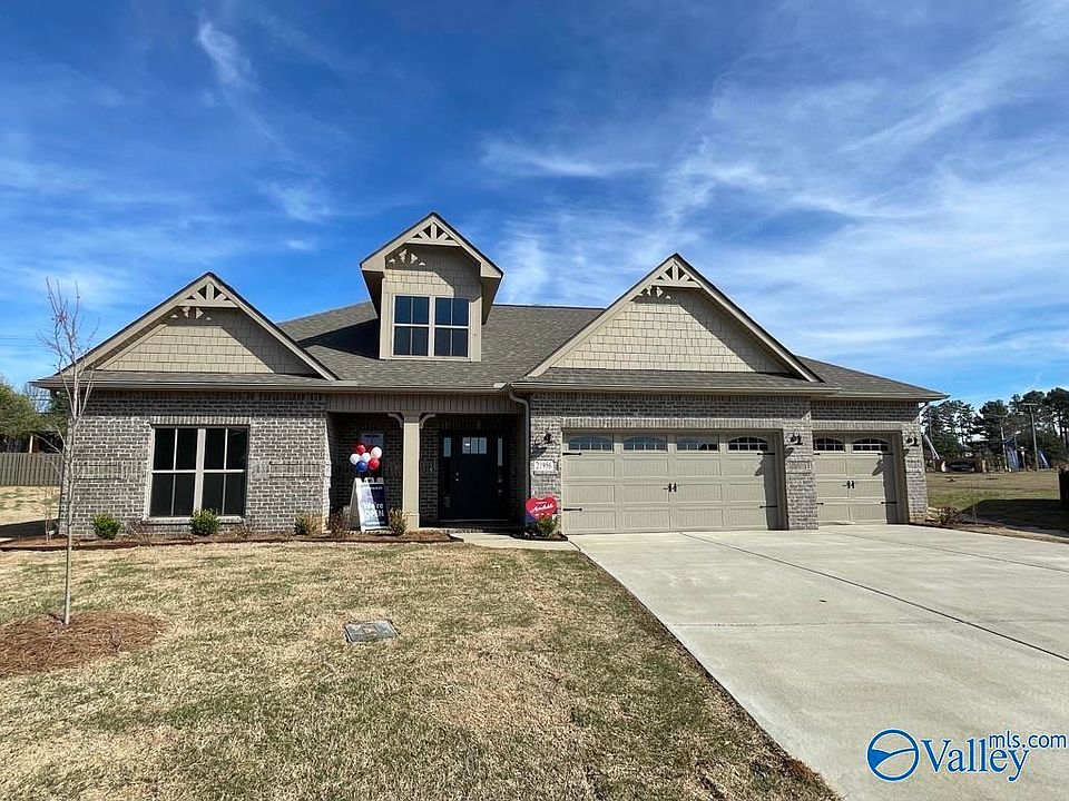 Manor Series with upstairs bonus, 3-car front entry garage, 4 bedroom, 3 bath, hardwoods, ceramic tile, 9' ceilings, light package, ceiling fans, crown molding, craftsman paneling in foyer, trey ceilings with shiplap in great room and MBR, tile shower w/ frameless glass door, tile tub surround, double vanity with quartz tops in MBR bath, quartz tops in kitchen, gourmet kitchen package with gas cooktop, built in oven and microwave, dishwasher, disposal, soft close cabinets and drawers, subway tile backsplash, gas log fireplace, security system, smart home and network ready.