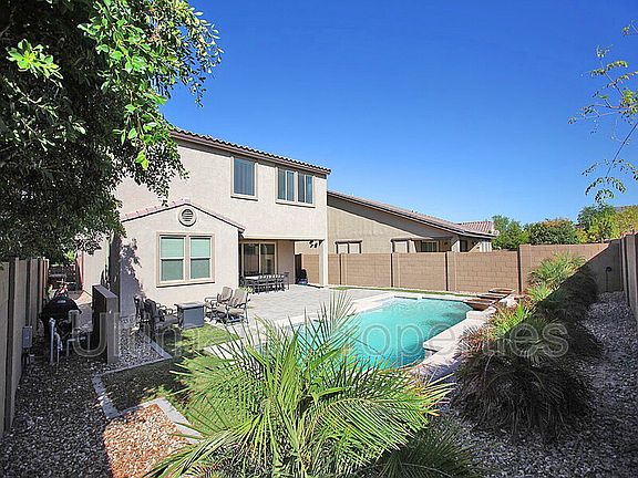 4 Bedroom + 2.5 Bathroom home in Peoria. Beautiful cabinets and granite counters in the kitchen and bathrooms! Kitchen features stainless-steel appliances, range/oven, built-in microwave, dishwasher, refrigerator. Separate family and living rooms. Ceiling fans and blinds throughout. Also includes washer and dryer. LARGE glass sliding door to backyard. Backyard features swimming pool, pavers, and turf.