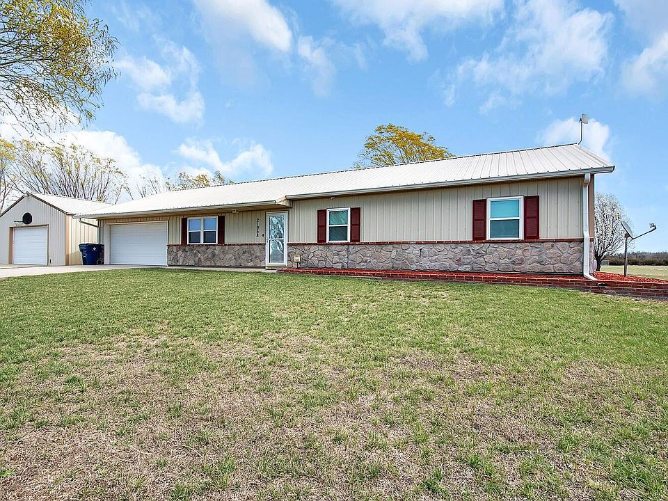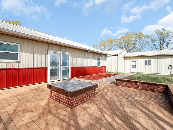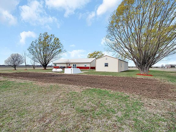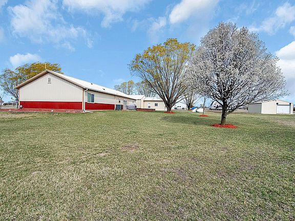 Where to begin to describe this very well kept 4-bedroom 2 bath 2 car garage metal home on 5 acres. The home sits on a corner lot along with its outdoor firepit, gas grill, additional large 4 car garage (32x30) with separate electric for a welder/air compressor and an attached heated shop (25x19). If that is not enough garage space then there is a 3rd large 1 car garage (20x20) with 2 battery tender solar panels for charging equipment on the property along with a tornado shelter. The property has a 10-zone sprinkler system supported by a well and the lagoon is to the back of the property. Inside is a large living room that opens up to the dining area and kitchen along with a fireplace. The kitchen has a gas stove with granite countertops, lots of cabinet space and a large pantry. The bathrooms were updated to include Onyx countertops. There are 4 bedrooms, three grouped together with one off the dining room that could be used for an office or craft room. Staying with the home is a security system that monitors the home and shop along with cameras and the Ring Doorbell. The home owner has had a radon test completed and it passed. If you have an RV there is a pad with graveled access to the road. There is a list of updates and additional items attached in the documents section so make sure you look at them. Better yet, just come and see it.