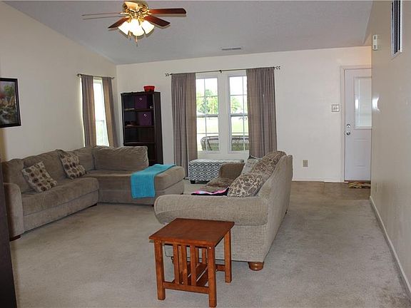 3 Bedroom 2 bath ranch on a big corner lot. Fresh paint with cathedral ceilings in great room make this house feel spacious. Over 1500 square feet all on one level! Large eat-in country kitchen. Master suite features full bath and walk-in closet. Washer, Dryer and Water Softener included. Attached 2 Car Garage. Perfect starter home or retirement pad. Neighborhood gives access to a club house and pool. Pack your bags, this house is move-in ready.