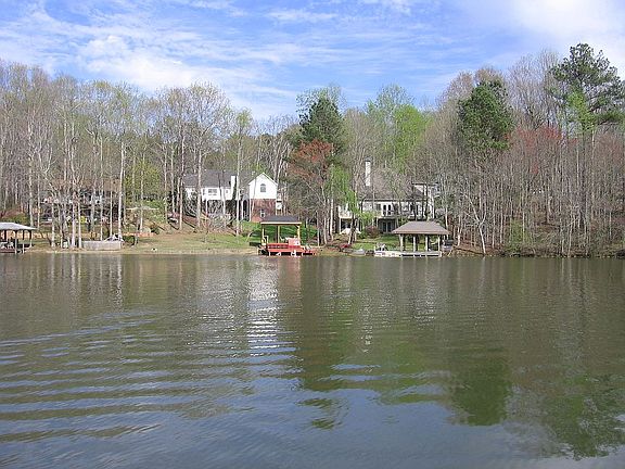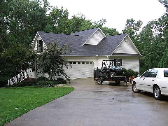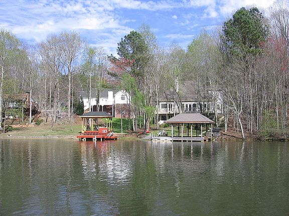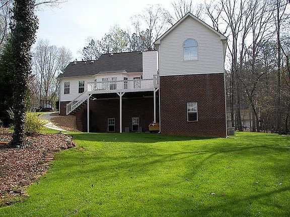 GENERAL DESCRIPTION: White with black shutters upper with red brick lower, approximately 4,800 square feet, 5 bedrooms, three full bathrooms, 2 brand new kitchens (1 upstairs, 1 downstairs) master on the main, laundry room on the main, formal dining room, deck off upstairs kitchen, large poured & tiled patio off downstairs kitchen, formal living room upstairs, huge family living area downstairs with own full bathroom including a garden tub and separate shower, wonderful yard for the family to enjoy with a pavilion and boat dock in addition to electricity at the dock (lighted). MASTER BEDROOM: Has double trey ceiling, large room with oversized walk-in closet and access to upper deck overlooking lake. New fleur-de-lis sculpted carpet and matching new paint, private bathroom with garden-Jacuzzi tub, separate shower, well vented, closeted private toilet, walk-in closet, separate linen closet, separate “his and her” sinks, countertops, and cabinets, beautiful window above tub to view lake. UPSTAIRS NEW KITCHEN: Newly and completely renovated with open floor plan. All new cherry wood cabinets with chocolate latte’ finish, roll out drawers so you don’t have to reach including a secret self closing double silverware drawer, a built in pantry, two (2) built in microwave ovens, and built in waste basket cabinet. All new appliances including a gas stove with vented hood (colors are silver and black), side-by-side refrigerator/freezer and build in dishwasher along with a double deep black double sink and GRANITE COUNTERTOPS with crafted brushed tile accented with the fleur-de-lis between cabinetry and granite countertop throughout. Built in breakfast bar with three oak barstools make morning coffee time sweet. New ceiling paddle fan/light. A separate built-in closet pantry with it’s own light. A coat closet as you enter the kitchen from the garage. Freshly painted with wainscoting and brand new oak flooring. There is a nice long walk out patio deck just off the kitchen and formal living room facing Lake Tara. TWO UPSTAIRS BEDROOMS: New paint, new fleur-de-lis sculpted matching carpet, new ceiling lighted paddle fan(s), one facing the lake with double louvered closet and new window, the other facing the front with a single closet and next to the restroom. GARAGE: Double car garage with automatic opener, key coded on the outside, also remote control (2), and can open and close from switch inside the garage next to the entranceway to kitchen, this switch also controls the door light. There is a separate overhead garage light controlled by a switch just inside the kitchen door. Overhead is a pull down ladder leading to a spacious attic, lighted, and floored for ample storage. GUEST BATHROOM UPSTAIRS: New tile flooring, freshly painted, tiled linen closet, combo tub/shower, marble sink, toilet, and well-vented, also new fixtures. FORMAL DINING ROOM: Nice formal dining room large enough to hold china cabinet, antique oak “horn of plenty” sideboard and a table that seats eight (8). Nice ornamental chandelier over dining table and matching light fixture in foyer and vaulted ceiling. Freshly painted with new oak flooring. FORMAL UPSTAIRS LIVING ROOM: Freshly painted and new oak wood flooring, vaulted ceiling, red brick thermal gas log (keyed) fireplace, open floor plan, windows facing Lake Tara, and access to upper walk out deck.
