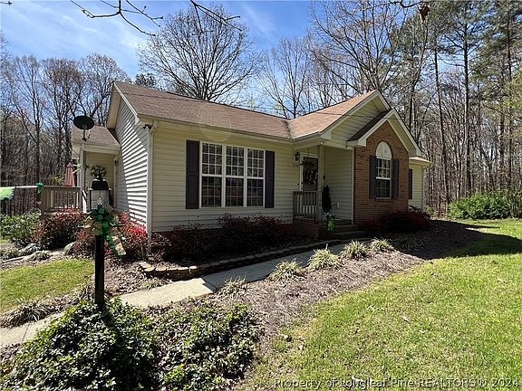 A breath of Fresh Air is what you will feel as you drive up to this charming 3 bedroom 2 bath home. Situated on just under an acre of land surrounded by trees in a nice country setting, this Beautifully landscaped yard says welcome home. This one owner home has Vaulted ceilings, gas log fireplace, hardwood and laminate floors throughout. The master has two closets and full bath. Large deck to relax on in a private backyard, shed and shelter stays. Located near US Hwy 1 and 421 by pass makes an easy commute to Raleigh or Fort Liberty. Seller offering $5000 in buyer concessions to use as they wish.