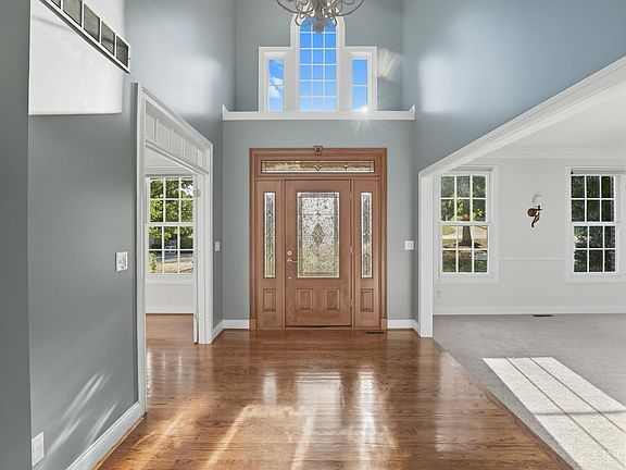 Nestled at the end of a private drive, this 1.2-acre retreat offers both privacy and everyday convenience. The circular driveway provides ample parking and a basketball court, while the 3-car garage includes built-in cabinets and an epoxy floor. Inside, updates--new roof, gutters with guards, fresh paint, new carpet, and updated lighting-move right in and enjoy. Gather in the soaring great room by the stone fireplace or cook with ease in the updated kitchen featuring a new Jenn Air gas range, smart oven, granite counters, and custom cabinetry. Upstairs houses 4 bedrooms the owner's suite feels like a private spa with a large walk-in closet, heated tile floors, soaker tub, and cozy fireplace. Three bedrooms, including 2 bedrooms with a Jack-and-Jill and 1 with a private ensuite. An additional 1st floor flex/bedroom offer plenty of flexibility for family or guests. Two high-efficiency HVAC systems ensure year-round comfort. Lower-level garage/workshop. 1st floor laundry.