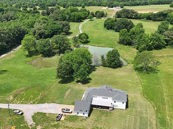 Beautiful custom built 5,270 sf 5 bedroom, 4 full and 2 half bath home sitting on 63.54 acres of land just west of the Hernando square. The first floor consists of 2 bedrooms, 2 full bathrooms and 2 half baths. Large great room with gas fireplace that is bricked to the ceiling. Kitchen consists of large island, granite countertops and a gas range with a bricked archway flowing into the great room creating a great space for entertaining large groups. The luxurious primary bathroom features walk in shower, free standing tub, double vanities and 2 large walk in closets. The second consists of a large finished play room, 2 bedrooms with private baths, one additional bedroom, an office and a media room. On the exterior there is a huge covered front porch overlooking a nice lake and on the rear you will find a large covered patio w/wood burning outdoor fireplace and outdoor kitchen area built in with cookers, grill and refrigerator. The 63.54 acres is majority rolling pastures with scattered trees and woods. The home sits in the middle of the property with a long gravel driveway through a gated entrance. A great property for the horse lover located only minutes from the Hernando square and I69.