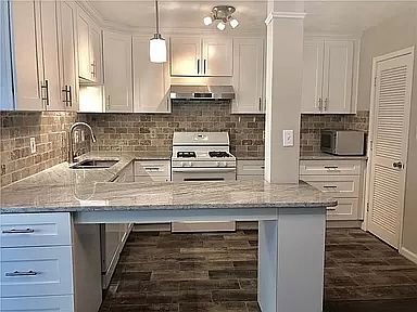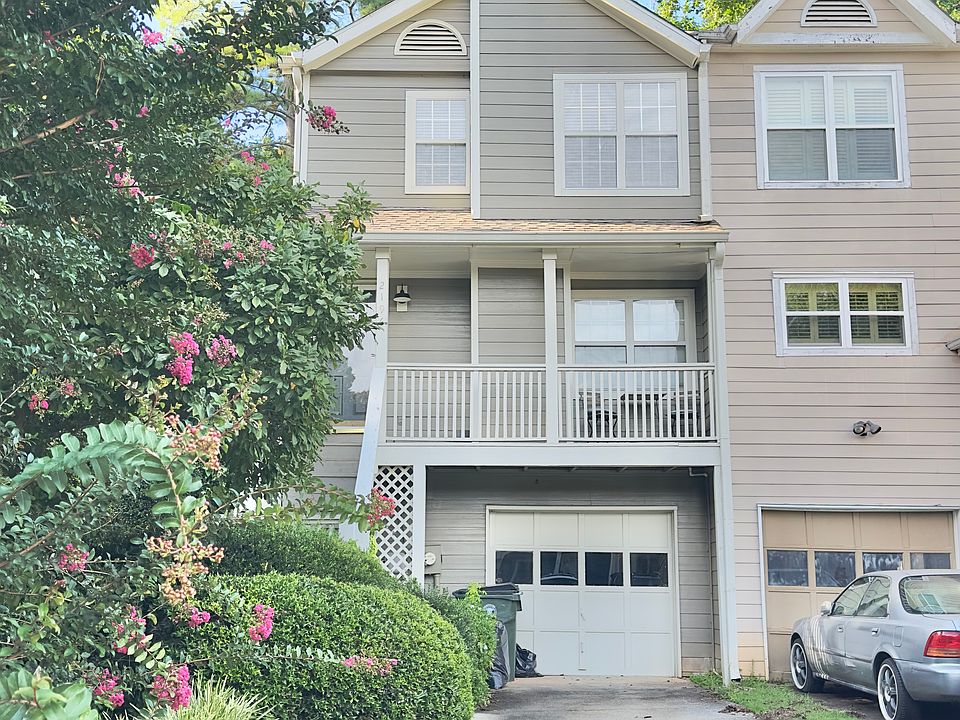 LOCATION, LOCATION, LOCATION! Beautifully updated end unit. Hardwood floor for the entire house, white cabinet, tile backsplash, granite countertop, tile bath, marble vanities. Extended dining/sun room, enlarged deck, fenced wooded backyard. 1 car garage. Easy access to Highway 285. Move-in ready on 8/1