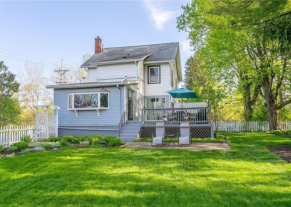 Welcome to 2196 W Jefferson Rd, a charming Colonial available for rent in the prestigious PITTSFORD School District. This meticulously renovated 4-bedroom, 2.5-bathroom home offers 1,756 sq ft of updated living space, with an additional approximately 400 sq ft in a finished attic. Enjoy the luxury of brand NEW KITCHEN AND BATHROOMS, part of an almost completed professional TOTAL RENOVATION to the interior. Step into a beautifully landscaped .53-acre setting, where new sliding doors lead to a back deck and concrete patio overlooking a private park-like yard perfect for summer entertaining. Additional features include an oversized detached two-car garage, ample parking, and the convenience of a first-floor laundry. Embrace the best of both worlds with a country setting that's still close to everything the wonderful YMCA is just a short walk away. This adorable and move-in-ready property requires a credit score of over 700. Available starting July 1st, seize the opportunity to make this delightful home yours! NOTE : SHOWINGS BEGIN JUNE 22 and NEGOTIATIONS begin JUNE 27 @ 2 One year. Negotiable but not less than one year. Animal Breed & size restrictions upon approval. Please complete Zillow application with credit check and background check.