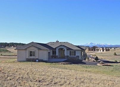 Beautiful Custom 5 bed 5 bath Home in Kings Deer.Boasting over 5,000sf located on a 2.51acre lot with gorgeous Pikes Peak views. Beautiful hardwood floors, and hand-troweled walls.Gourmet kitchen with granite counters and stainless appliances. Soaring vaulted ceilings.Fantastic master bedroom with sitting area,fireplace,private access to the rear deck.5pc master bath boasts jetted tub and a 2-person shower.Theater with multi-tiered seating.Partially covered rear deck and custom patio and fire pit. Golf course community.