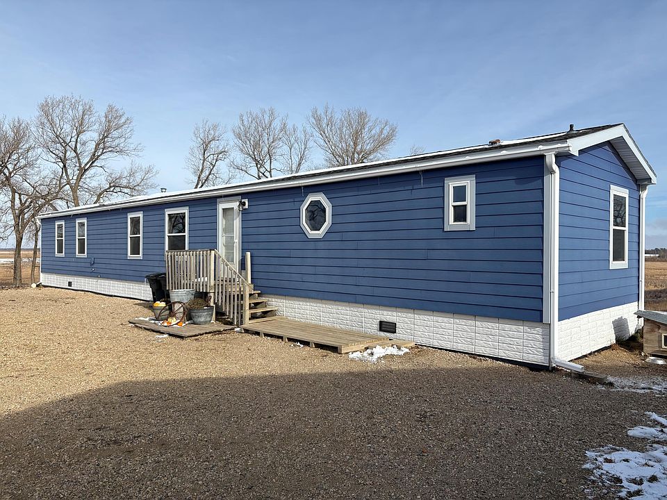 MOBILE HOME TO BE MOVED APRIL 2026! Here's a great opportunity to purchase a mobile home and move it to your desired location. The home has been well maintained and includes 3 bedrooms and 2 full bathrooms. The spacious kitchen includes all appliances (propane stove currently). The layout is set up well with two bedrooms on one end and the primary suite with large bathroom on the other end. This home would make a great option for an acreage site, mobile home park or maybe a hunting lodge! The exterior has cement board siding and the decks can be included. Moving costs and set up to be at buyer's expense. The sellers will occupy the home until April 2026. A buyer can plan to get their mover ready for this coming Spring!