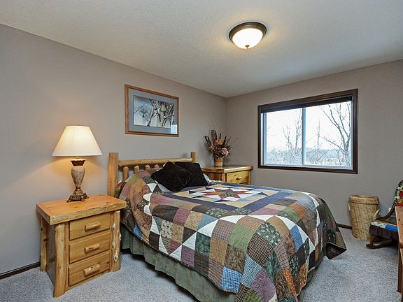 Gorgeous custom built home located on beautiful, 1.9 acre cul-de-sac lot! Features of this spotless two story walk out; open floor plan, 4 bedrooms in upper level -including fabulous master suite, upper level laundry, 50x11 bonus room, spacious kitchen w/granite countertops & high end stainless steel appl. pkg., maple flooring, stunning gas fireplace, whirlpool, large deck, firepit area & paver patio. Attached 5 stall garage is heated, insulated & plumbed with sink. Beautiful manicured lawn with scenic pond view. Only 2 miles from I-35 freeway access!