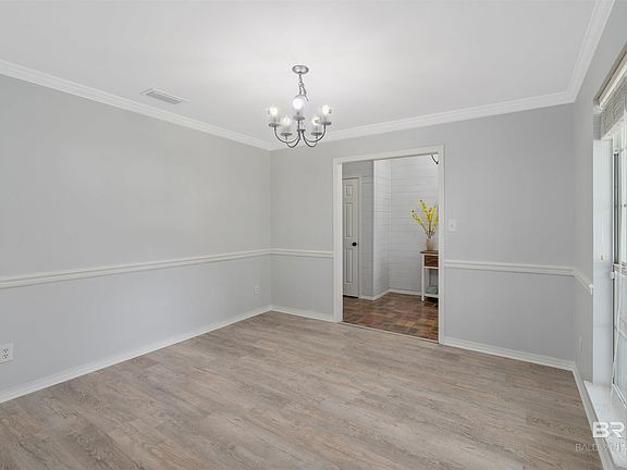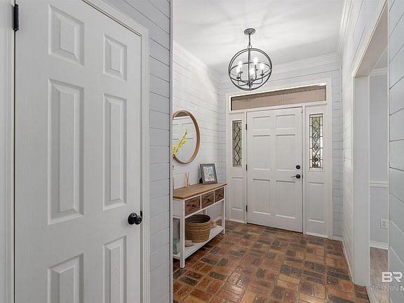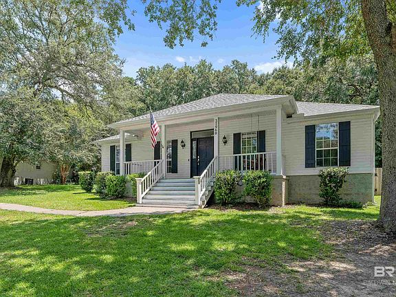 Welcome to this Charming Fairhope Home. A tranquil setting with the home nestled on almost a half-acre lot with beautiful hardwood trees located in Country Woods Subdivision. Enjoy morning and/or the evenings sitting on the inviting front porch. Enter the home find Foyer with new ship lap. Separate Dining room with nice window for natural light. Updates in the kitchen include new granite counter tops, new soft close custom cabinetry, new gas range and appliances in the slate finish open to the breakfast area. The great room has a dome ceiling and wood burning fireplace with gas starter. Large primary bedroom with tray ceiling has modern twist with cool modern solid sliding doors and on-suite bath, a walk in closet and walk-in shower. Bedrooms 2 and 3 share hall bath with ½ bath found off the kitchen for guest. The sunroom is heated and cooled and has new storm windows that slide open to enjoy fresh air. The backyard is one of a kind with beautiful hardwood trees, a 16 x 12 shed with electricity and with new privacy fence. Updates include new paint, new vinyl flooring in the dining room, great room, sunroom, and all bedrooms, refurbished HVAC with new motor and sealed all duct work, roof 2021. New fence, new quartz counter tops in primary and hall bath, new ship lap in foyer and ½ bath, new granite, new appliances set in satin graphite finish, new soft close cabinets, new floating shelving, new backsplash, new granite composite kitchen sink, and more. Great location and no HOA. All information provided is deemed reliable but not guaranteed. Buyer or buyer’s agent to verify all information. Buyer to verify all information during due diligence.