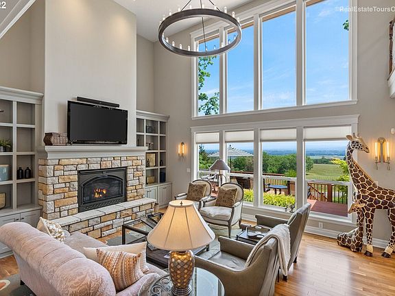 Gorgeous custom estate nestled in the middle of Oregon wine country. Enjoy the tranquil 3.84 acre setting w/creekside hiking trails, incredible outdoor living spaces, immaculate home w/gracious floor plan & stylish amenities. Primary bedroom located on the main, home office, stunning gourmet kitchen remodel, custom built-ins, luxurious features, spacious bonus room & additional bedrooms, wine cellar, workshop, lots of storage, forever VIEWS overlooking miles of vineyards & 5 majestic mountains!