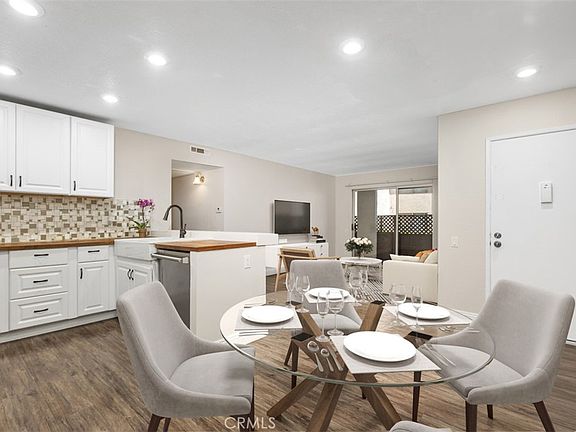 This condo qualifies for $10,000 Buyer credit or Zero down. Contact me for more information. NOT a 55+ community. This beautifully remodeled/upgraded condo is in the heart of Lake Forest. This home is on the first level and so peaceful. You are greeted by this light and airy open concept that seamlessly connects the living room, dining room, and kitchen together for a modern feel. Refrigerator is included! You have luxury laminate flooring, canned lights in the kitchen & Dinning area, AC units in the Primary room and the Living room, Butcher Block counter tops, newer Faucet, stainless steel appliances, microwave, New Stove, newer cabinets, newer backsplash, New Refrigerator, Viking Dishwasher, Farm House style sink. Both of the bedrooms you have new vinyl flooring. The sliding doors and window fills the space with natural light. The Primary bedroom has wall to wall closet space. The sliding doors from the living room and secondary bedroom each have access to the sizable balcony with the sliding door and there is a large storage closet. You have The Rimgate Park that is next to the complex. Offering ultimate convenience with the in-unit laundry space for a washer and dryer in the large hallway closet with plenty of space for linens and additional storage. This home has been updated for your leisure and comfort in this well maintained desirable community of Bench Mark Villas. Convenience is key with easy parking for your guests withing the community. This LOW HOA pays for TRASH & WATER! You have nearby these amenities of Rimgate Park with a playground, basketball courts, tennis courts, and volleyball all surrounded by the grassy area for picnics, games and just having fun and enjoy the peaceful area. There are walking rails nearby. Close by are restaurants, shopping, stores, grocery stores, fast food, take out, movie theaters, The Spectrum, schools, 5 & 405 freeways to the toll road and Orange County Airport, South Coast Plaza, The Great Park, Laguna Beach and a short drive to the World Famous Beaches in San Clemente and Dana Point. Location, Location, Location! Don't let this opportunity pass you by to own one of the best situated units in the community approved for FHA & VA financing. Schedule a showing Today and experience the serene charm of this Lake Forest Gem! I have digitally staged photos for the Primary bedroom, Living room and the Dining room. ** There is currently a re-pipe project in progess in the community**