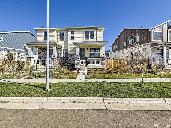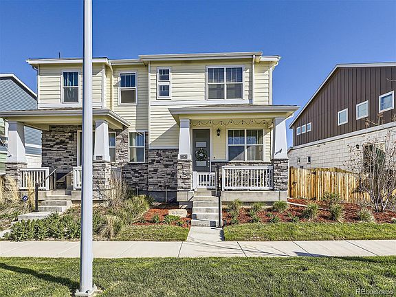 Step into luxury living with this open floorplan home featuring upgraded amenities throughout. Nestled in a brand-new master-planned community, this residence offers exquisite cabinetry, granite countertops with a subway tile backsplash, and top-of-the-line stainless steel appliances including a Gas Range. The bathrooms boast quartz countertops, tile floors, and modern fixtures. Other enhancements include a garage door opener with coach lights, A/C, WiFi-enabled features, and a Smart Home setup with a Video Doorbell, Smart Thermostat, and Touchscreen Panel. Designed with energy efficiency in mind, the home is well-insulated and pre-wired for solar connection, making it eligible for government tax rebates. The centrally located laundry room features newer washer and dryer. With 3 spacious bedrooms and 3 large bathrooms arranged in a split floorplan for privacy, the Primary Suite boasts a bright bathroom with a walk-in shower and ample closet space. Enjoy the outdoors on the greenbelt and fully fenced front yard, perfect for community activities. The community offers Walking Trails, Open Lawns/Event Spaces, a Nature Discovery Corridor, Playgrounds, Picnic Areas, Tennis Courts, a Dog Park, and Pocket Parks. Conveniently situated near Buckley Air Force Base and E-470 with easy access to I-70, this property is also available for lease.