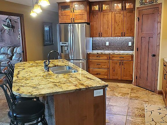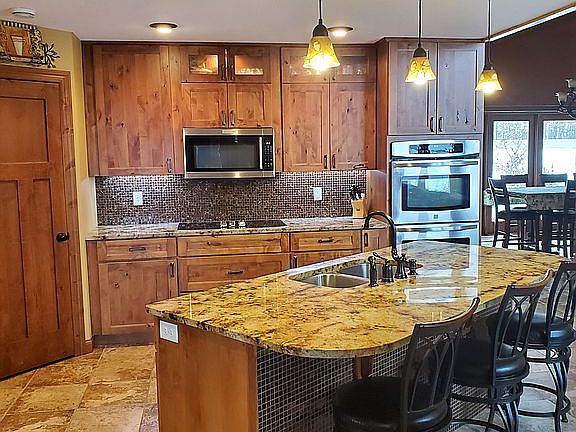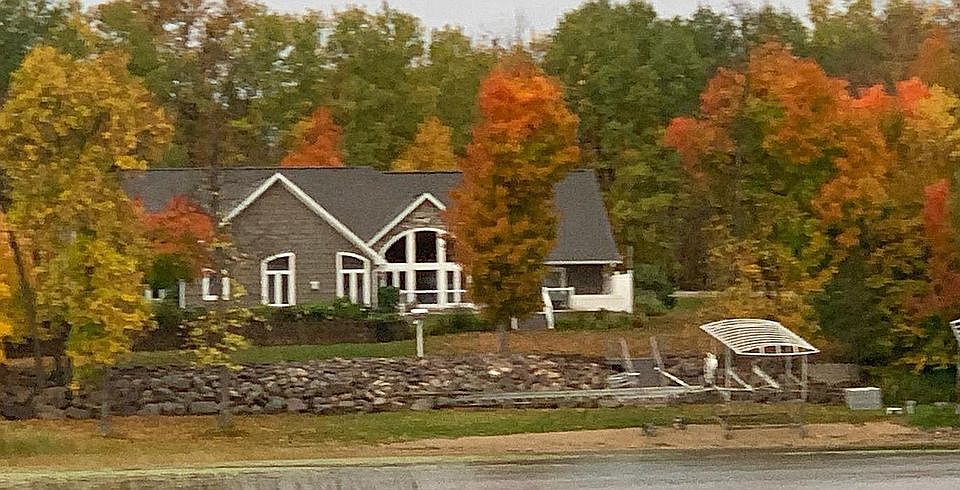 160 feet of lakeshore, lots of stonework inside and on exterior, 2-gas fireplaces, knotty alder cabinetry/doors/trimwork,walkin tiled shower in master, irrigation, elec boiler floor heat, gas forced air furnace, central air, vaulted ceilings with pine vgroove..much more.