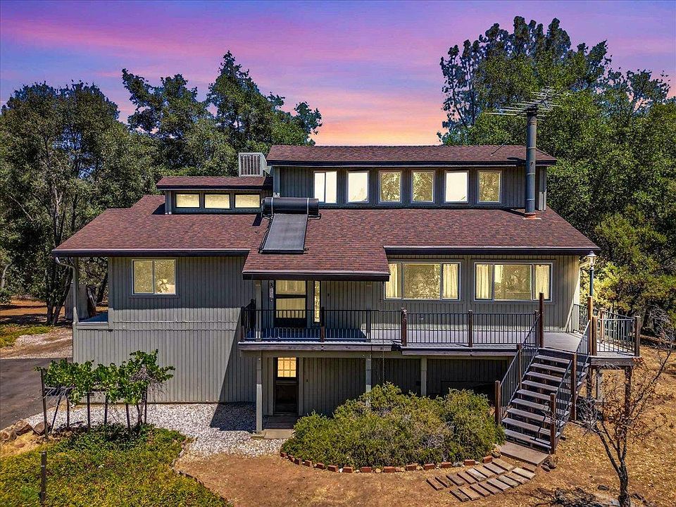 10 usable acres surround this Two bedroom, 2 bath home. Large loft upstairs could be 2nd bedroom. The home features: living room, dining area, large kitchen, indoor laundry and separate office/exercise room. There is an oversized garage with adjoining workshop and a detached 2 car garage which is a bonus for storage or other uses. Only a short distance from Hwy 49. The 10 acres are mostly usable and would be great for equestrian facilities, a Vineyard and or plenty of room for a second home/ADU. The long paved driveway creates ample privacy. All of the above provides for a great value!