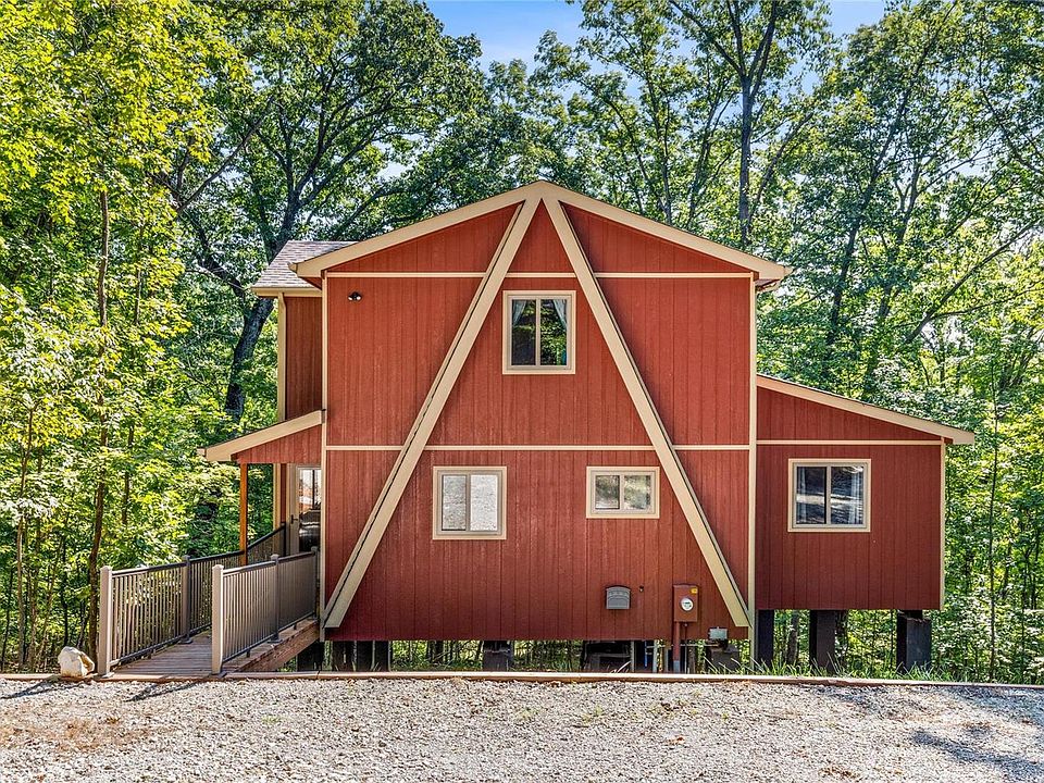 Escape to this stunning, 2-year-new Timberline design A-Frame chalet at Innsbrook, nestled among 3 acres of gorgeous trees and offering the perfect year-round retreat. Thoughtfully decorated & designed with an expanded deck and screened in porch, this chalet has charming indoor & outdoor space for entertaining or enjoying quiet getaways. With 3 bedrooms, a cozy gas fireplace in the great room, and a large deck for enjoying the serene surroundings, this turn-key getaway is ready for you to enjoy immediately, with most furniture included. Washer/dryer also included. A convenient shed with a garage door provides storage for your golf cart and outdoor gear, while the fire pit and circle drive add to the charm. Located near the Alpine Dam for great fishing and just minutes from the log cabin and many hiking trails, this property is centrally located and easy to get to from several Innsbrook entrances. If desired, rent it out for extra income. Golf cart and fishing boat available separately.