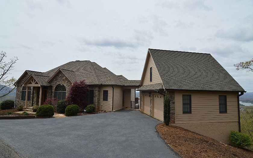 SPECTACULAR PANORAMIC MOUNTAIN & LAKE VIEWS!! This BIG quality craftsman home offers an open floor plan, perhaps the best lake views in the county + 3 master suites/3 full baths/2 half baths, 2 stacked stone fireplaces, large decks & screened-in deck, trex decking, walnut & oak wood floors, security system, vaulted ceiling w/ exposed beams, spacious kitchen w/ quartz counters & stainless appliances & cherry cabinets, a breakfast room, formal dining area, huge master & master bath on the main level, master bath w/ tiled shower & jetted tub, kitchenette on lower level, Andersen windows & doors, tons of storage, detached 2 car garage, & too many benefits to list. Come see for yourself this home and the amazing lake & mountain views.