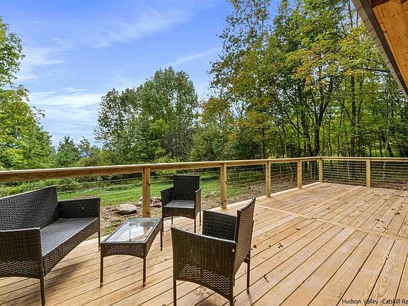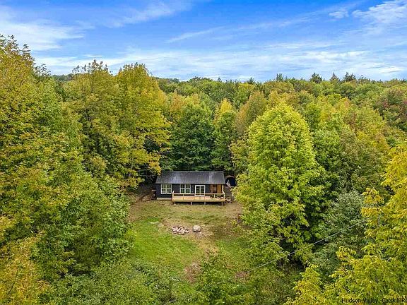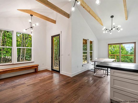 THE HERMITAGE - A LUXURY CATSKILLS CABIN - Everything you could want in a 'just the right size' SUPER-STYLISH HOME. Look no further (and hurry to set an appointment - this one won't last). This HIGHLY CURATED BEAUTY is the latest from the talented design/build team of Whisky Hollow. A RARE TURN-KEY STUNNER. EVERYTHING IS NEW 2022 (literally to the studs renovation, electrical, plumbing, roof, siding insulation and a new addition) with ARTISAN DETAILS to swoon over. EXPERIENCE INDOOD/OUTDOOR LIVING with OVER-SIZED WINDOWS THROUGHOUT plus a HUGE WRAP-AROUND DECK and GENEROUS COVERED PORCH. You will love the SOARING CEILINGS and EXPOSED BEAMS CRAFTED WITH LOCAL CATSKILL MOUNTAIN HEMLOCK. The OPEN-CONCEPT FLOOR PLAN with SUN-FILLED ROOMS is perfection....starting with the entrance (check out the 8 FOOT GLASS DOOR that opens to a large mudroom. Everyone will want to hang in the GOURMET KITCHEN with POLISHED CONCRETE COUNTERS WITH ARTISANAL LIVE-EDGE CHERRY WOOD DETAIL (and yes the cherry wood was CUT AND HAND-MILLED IN THE CATSKILLS). Kitchen also features a gorgeous 6-BURNER STOVE with POT-FILLER and a CUSTOM HOOD WITH POLISHED CONCRETE FINISH. It really is that perfect size - two large bedrooms with CUSTOM BARN-DOORS, built-in window seat with storage and pretty much the SEXIEST BATHROOM going! Relax in a FREE-STANDING SOAKING TUB or experience the OPEN GLASS SHOWER. GORGEOUS TILE WORK and RADIANT HEAT FLOORS complete it! Mini-splits in the great-room and bedrooms ensure everyone is comfortable on the hottest days or the coldest evenings. Outside the town-maintained quiet road leads to 5 ACRES OF TOTAL PRIVACY in this delightful WOODLAND SETTING with a NOTCHED MOUNTAIN VIEW and a RUSTIC NATIVE BOULDER FIRE-PIT! Situated in the HIGHLY DESIRABLE VILLAGE OF ANDES and CLOSE TO ALL AREA ATTRACTIONS including amazing restaurants, farm-markets, skiing, hiking, kayaking, golf and more. 2.5 miles from the GWB. YOUR CATSKILL DREAM AWAITS. Work is being completed and sellers will provide a list of items that will be finished prior to closing.